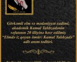 Abdulla Şaiqin Mənzil-Muzeyində “Elmdə iz qoyan ömür: Kamal Talıbzadə” adlı anım tədbiri keçiriləcək