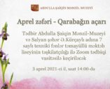 3 aprel 2021-ci il tarixdə saat 14:00-da “Aprel zəfəri – Qarabağın açarı” adlı onlayn tədbir keçiriləcək. Tədbir Abdulla Şaiqin Mənzil-Muzeyi və Salyan şəhər Ə.Kürçaylı adına 7 saylı texniki fənlər təmayüllü məktəb...