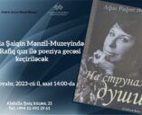 24 noyabr 2023-cü ildə saat 14:00-da Abdulla Şaiqin Mənzil-Muzeyində ədibin bacısı Ruqiyə xanımın nəticəsi ədəbiyyat müəllimi, şairə, “Axund Uşaqları” adı ilə tanınan ziyalı və yaradıcı nəslin nümayəndəsi Afaq Rafiq...