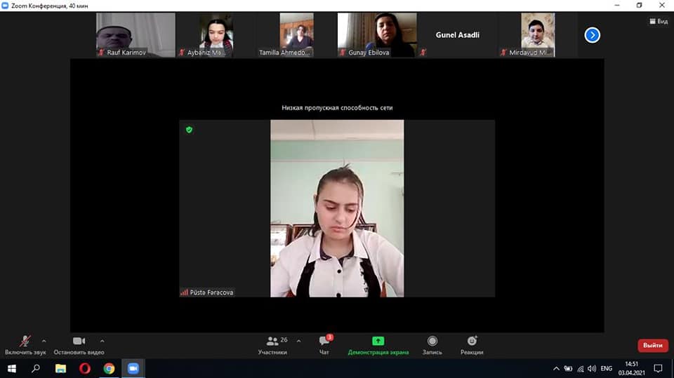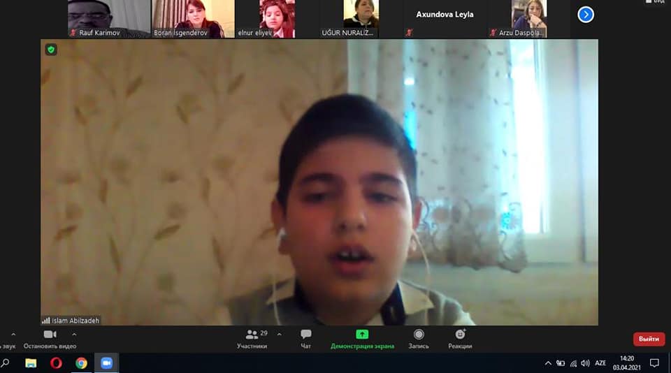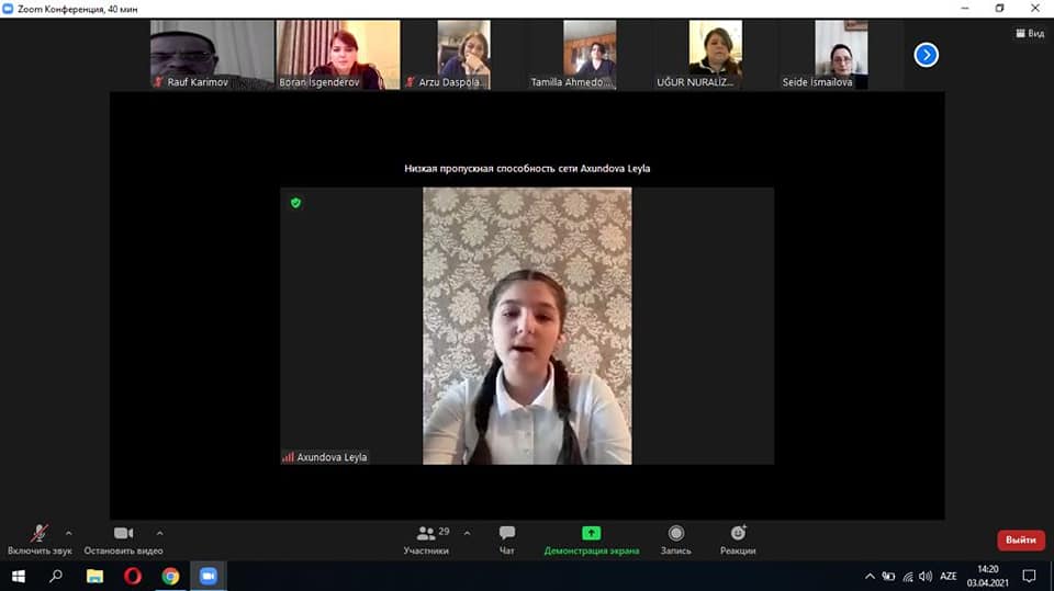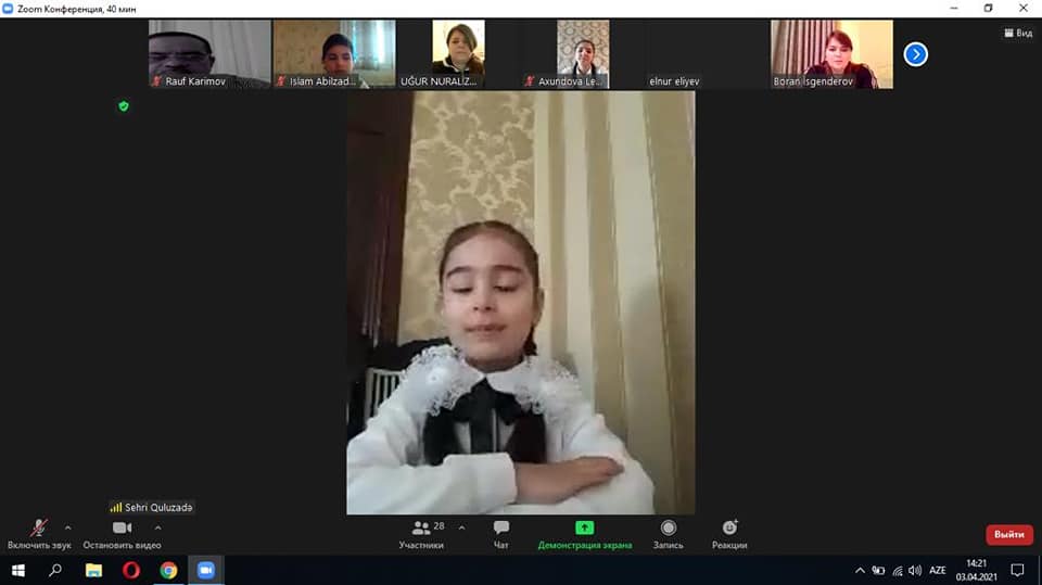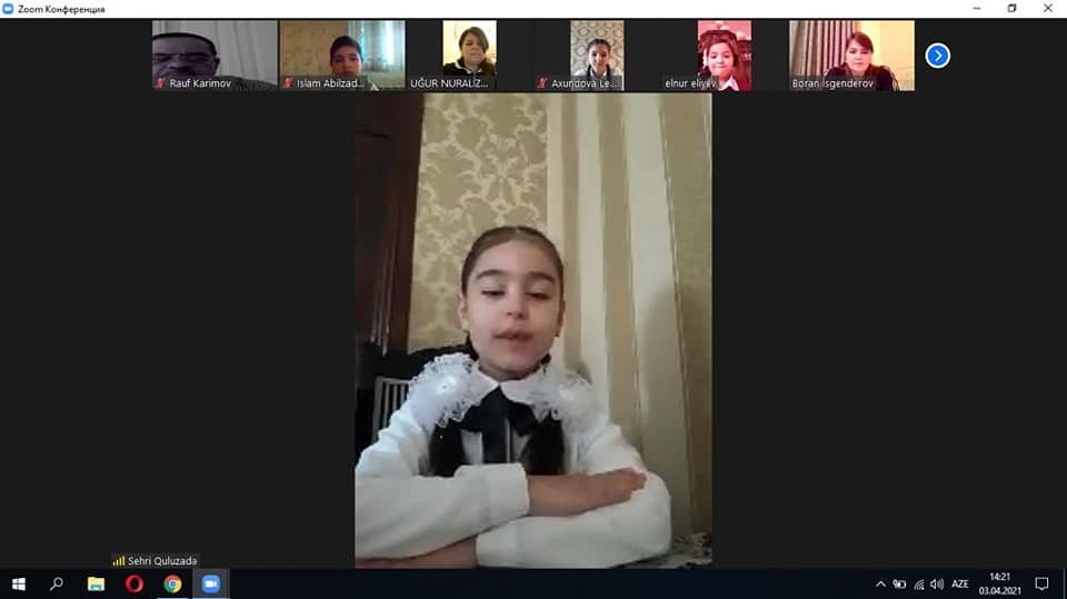3 aprel 2021-ci ildə Abdulla Şaiqin Mənzil-Muzeyi və Salyan şəhər Ə.Kürçaylı adına 7 saylı texniki fənlər təmayüllü liseyin birgə təşkilatçılığı ilə “Aprel qələbəsi – Qarabağın açarı” adlı onlayn tədbir (Zoom tətbiqi vasitəsilə) baş tutdu. Tədbirdə Abdulla Şaiqin Mənzil-Muzeyinin əməkdaşları, Salyan şəhər Ə.Kürçaylı adına 7 saylı texniki fənlər təmayüllü liseyinin şagirdləri və müəllim heyəti, Bakı şəhərində yerləşən muzeylərin əməkdaşları iştirak etdilər. Aparıcı muzeyin əməkdaşı yazıçı Arzu Hacızadə qonaqları salamladıqdan sonra sözü liseyin direktoru Arzu xanım Daşpoladovaya, Salyan rayon təhsil şöbəsinin metodisti Validə Cəbrayılzadəyə, təlim-tərbiyə işləri üzrə direktor müavini Tamella Əhmədovaya, Azərbaycan dili və ədəbiyyat müəllimi Günay Əbilovaya verdi. Tədbir vətənpərlik mövzusu ilə bağlı olan şeir, çıxış və məruzələrlə davam etdi. Növbəti çıxış üçün sözü Abdulla Şaiqin Mənzil – Muzeyinin böyük elmi işçisi Günel Əsədovaya, muzeydə istehsalat təcrübəsi keçən Azərbaycan Dövlət Mədəniyyət və İncəsənət Muzeyinin tələbəsi Sənan Qarabağlıya verildi. Tədbirin təşkili üçün liseyin müdiriyyətinə təşəkkür edirik.
