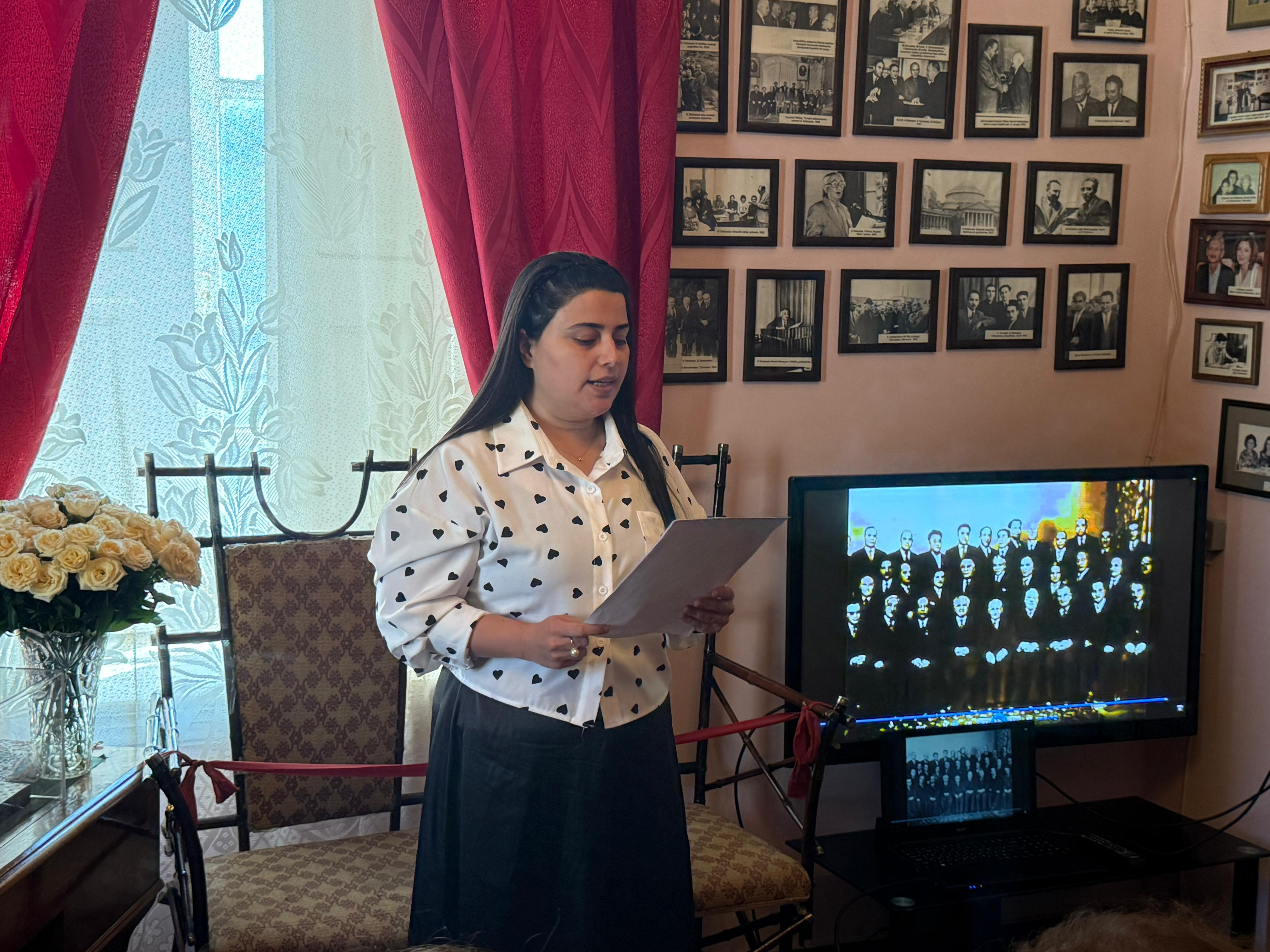 Bədii hissədə Abdulla Şaiqin Mənzil-Muzeyinin kiçik elmi işçisi Fəridə Məmmədova ədibin “Canlı Dərbənd çiçəyi” şeirini səsləndirdi, slayd-şou nümayiş etdirildi.
