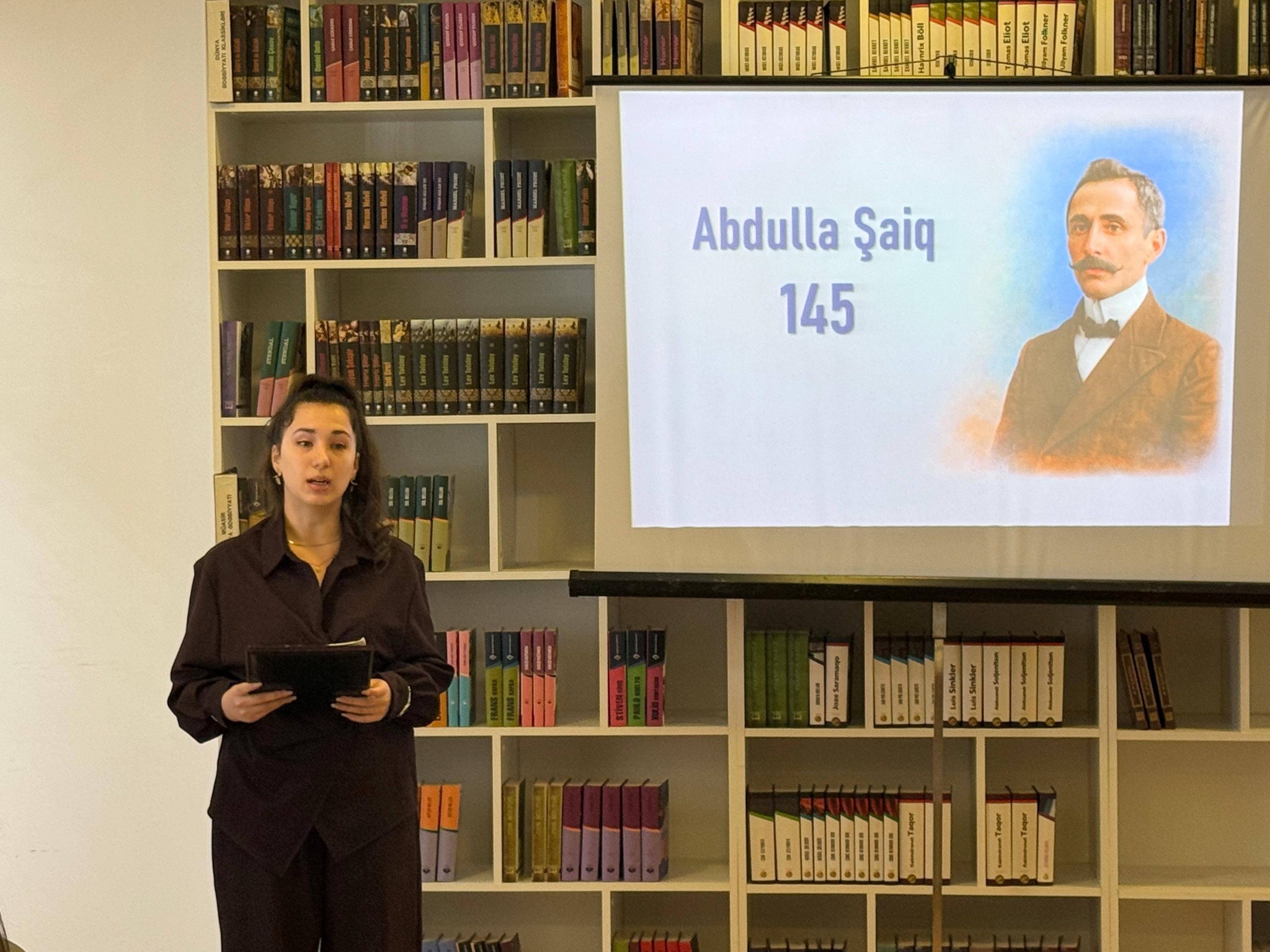 Tədbirin təşkilatçısı və aparıcısı kitabxananın kitabxana-informasiya texnologiyaları üzrə mütəxəssisi Lamiyə Osmanova idi. O, iştirakçıları salamladıqdan sonra Abdulla Şaiqin milli ədəbiyyatdakı rolundan ətraflı danışdı.